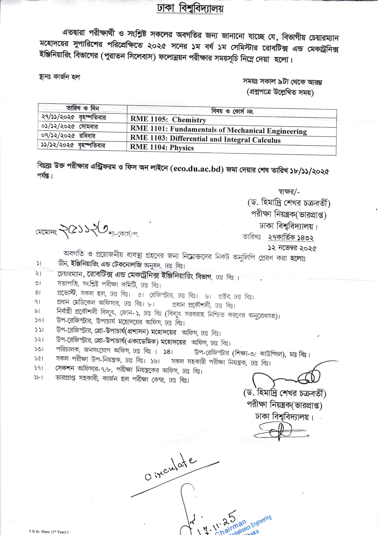 1st Year 1st Sem. 2024-2025 Improvement Exam Routine By Bimal Das|2025-11-18T10:25:21+00:00November 18, 2025|Comments Off on 1st Year 1st Sem. 2024-2025 Improvement Exam Routine Share This Story, Choose Your Platform! FacebookTwitterRedditLinkedInWhatsAppTelegramTumblrPinterestVkXingEmail About the Author: Bimal Das