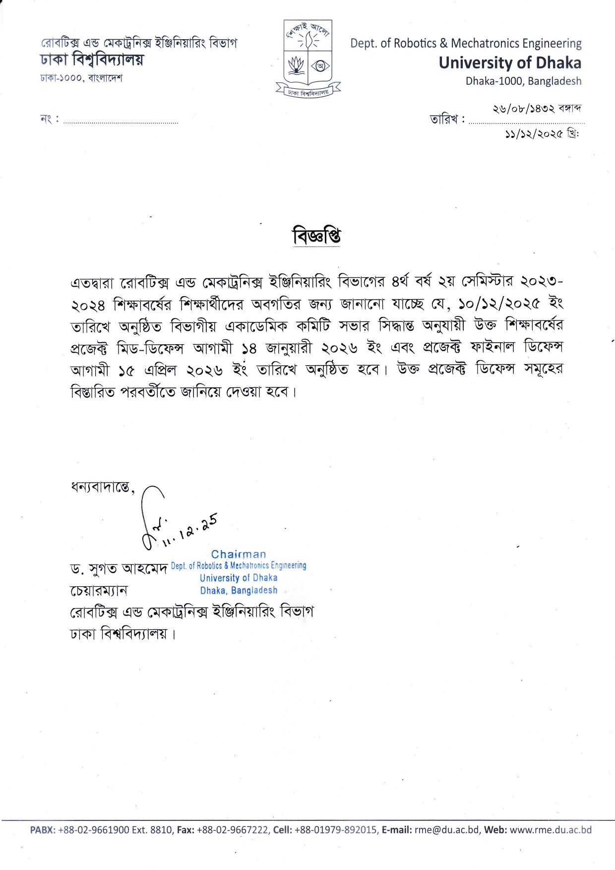 4th Year 2nd Sem. 2023-24 Project Mid Defense and Final Defense Notice By Bimal Das|2025-12-18T06:50:32+00:00December 18, 2025|Comments Off on 4th Year 2nd Sem. 2023-24 Project Mid Defense and Final Defense Notice Share This Story, Choose Your Platform! FacebookTwitterRedditLinkedInWhatsAppTelegramTumblrPinterestVkXingEmail About the Author: Bimal Das