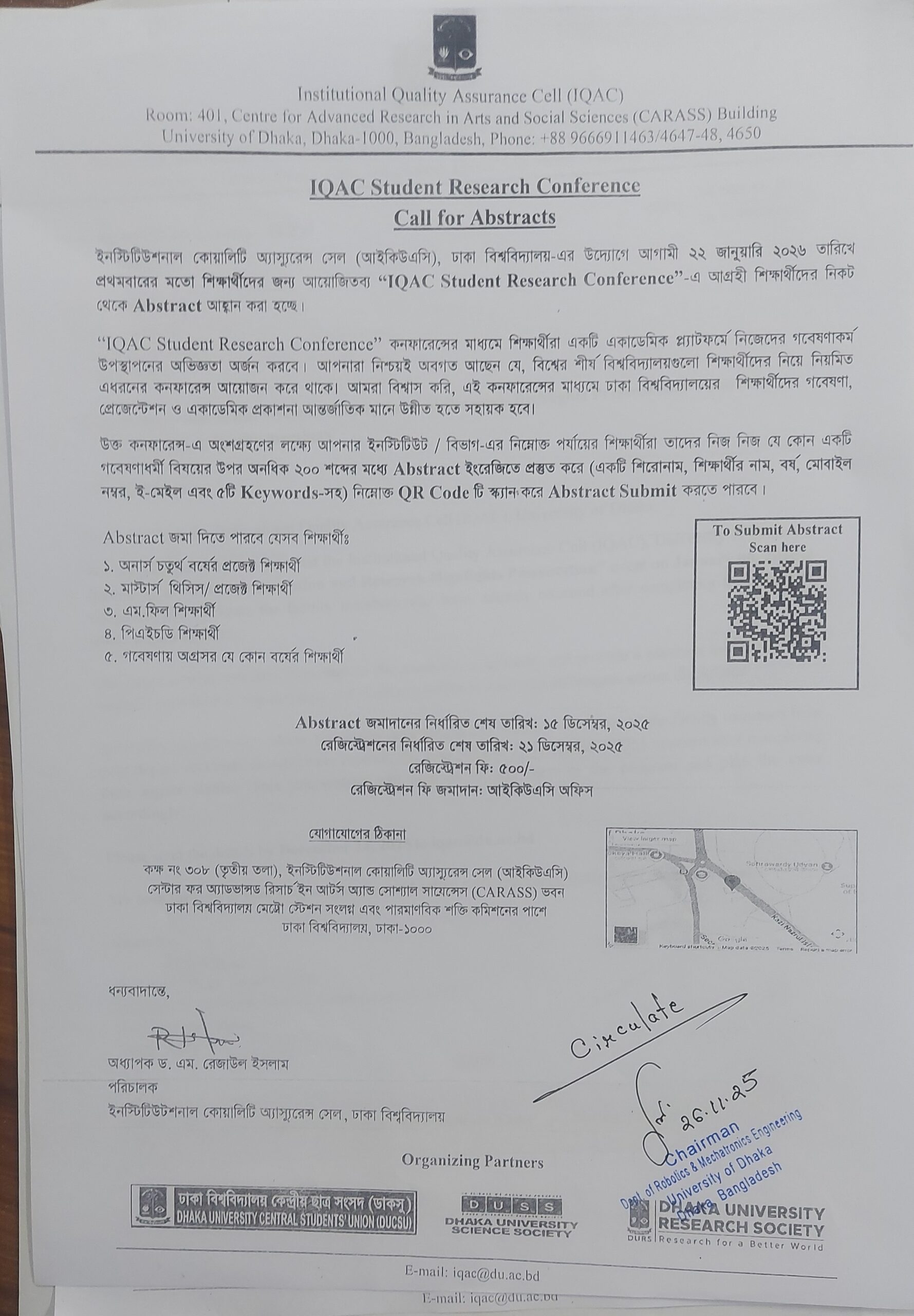 Call for Abstracts, IQAC By Bimal Das|2025-11-27T11:36:03+00:00November 27, 2025|Comments Off on Call for Abstracts, IQAC Share This Story, Choose Your Platform! FacebookTwitterRedditLinkedInWhatsAppTelegramTumblrPinterestVkXingEmail About the Author: Bimal Das