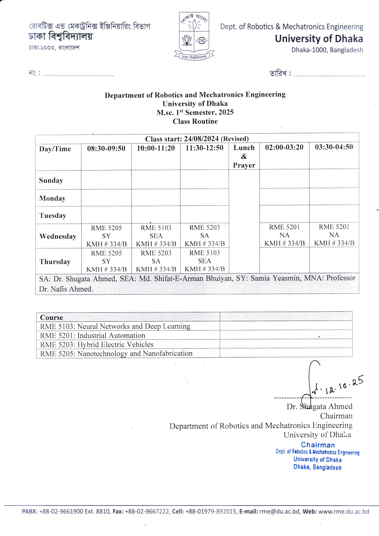 M.Sc. 1st Sem. 2024 Class Routine (Revised)