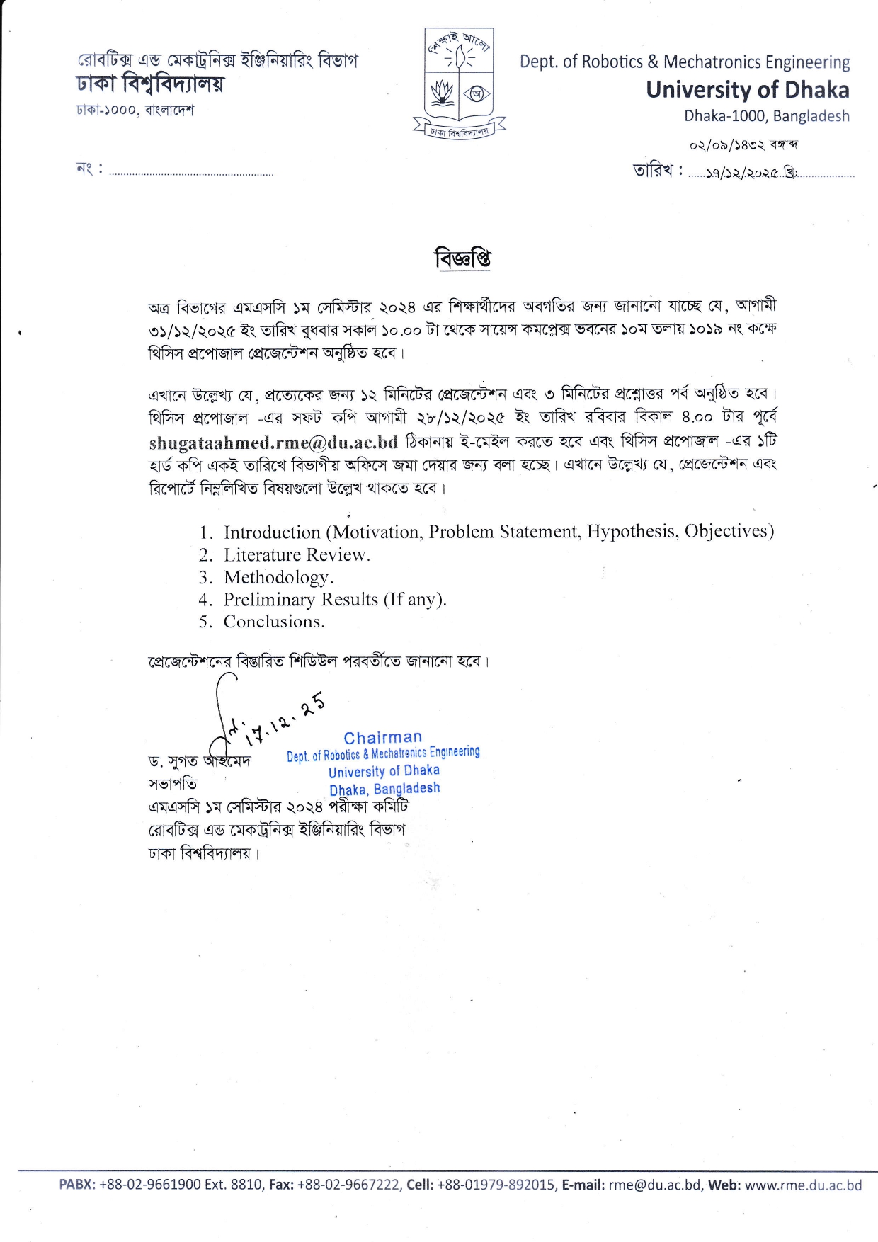 M.Sc. 1st Sem. 2024 Project Proposal Submission and Presentation Notice By Bimal Das|2025-12-18T07:09:46+00:00December 18, 2025|Comments Off on M.Sc. 1st Sem. 2024 Project Proposal Submission and Presentation Notice Share This Story, Choose Your Platform! FacebookTwitterRedditLinkedInWhatsAppTelegramTumblrPinterestVkXingEmail About the Author: Bimal Das
