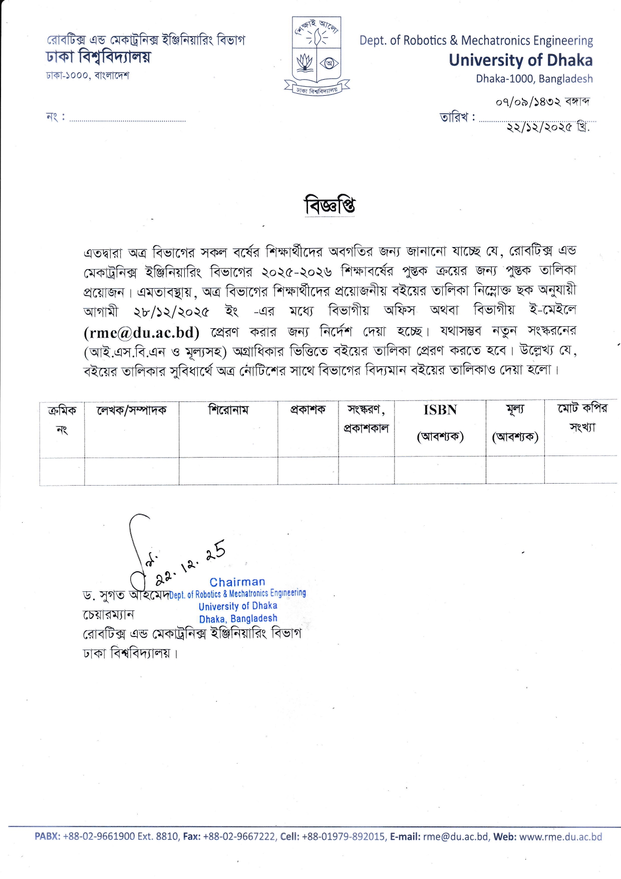 Notice Regarding Book List (Students) By Bimal Das|2025-12-23T10:20:36+00:00December 23, 2025|Comments Off on Notice Regarding Book List (Students) Share This Story, Choose Your Platform! FacebookTwitterRedditLinkedInWhatsAppTelegramTumblrPinterestVkXingEmail About the Author: Bimal Das